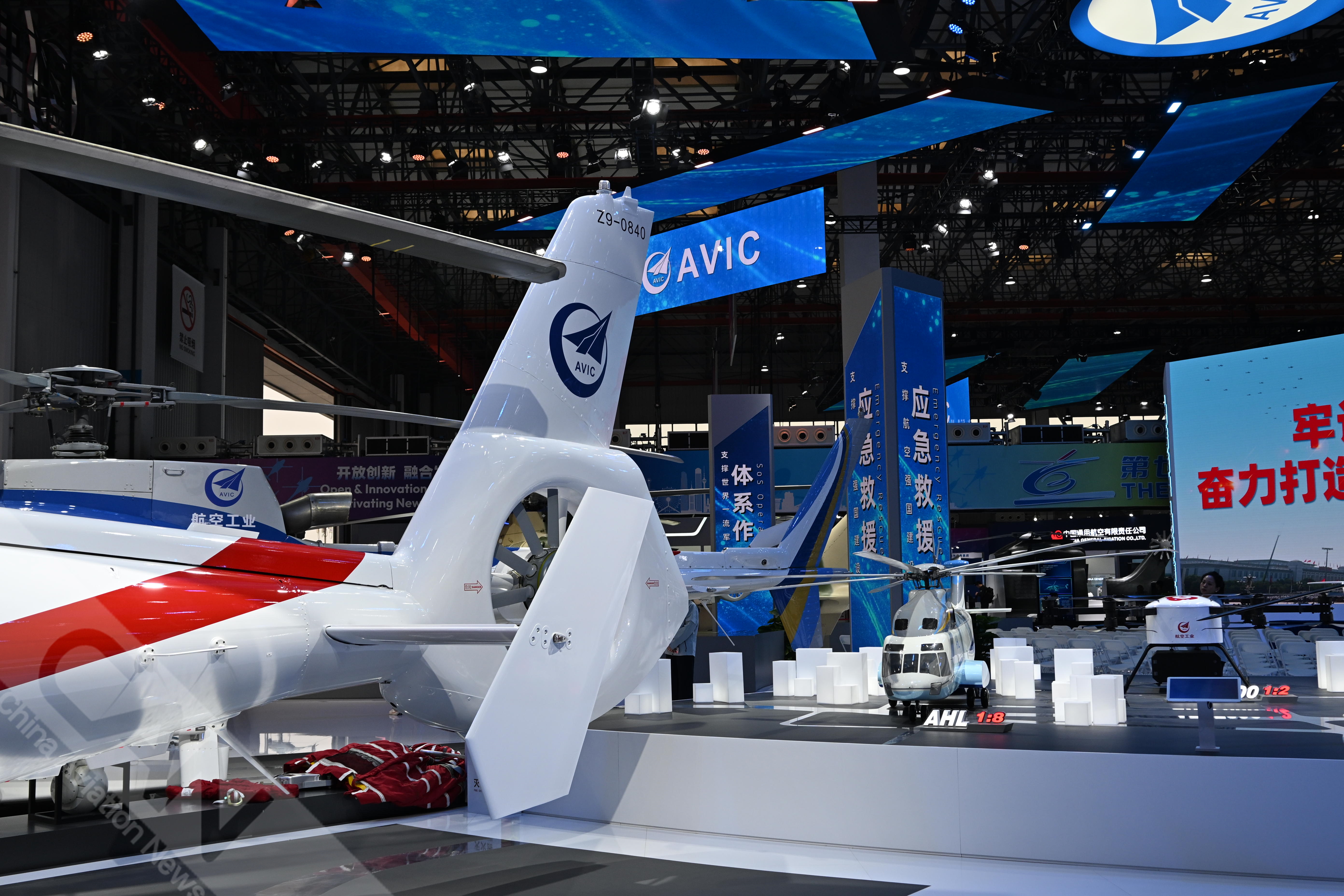 AC312E亮相第七屆天津直博會室內(nèi)展館。AC312E是航空工業(yè)集團響應(yīng)國家通航產(chǎn)業(yè)發(fā)展研制的雙發(fā)多用途直升機。攝影:吳紫磨