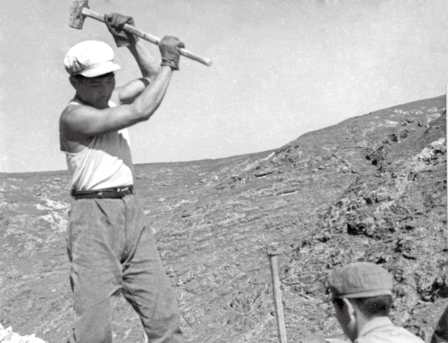 工地對毛石的需求量也非常大,在隊長的帶領(lǐng)下,120多名采石隊員登上比廠區(qū)還要高出100多米的中梁山,開山采石運石。他們每天早出晚歸,中午在山上啃涼饅頭就咸菜,頭頂烈日,揮錘開山。